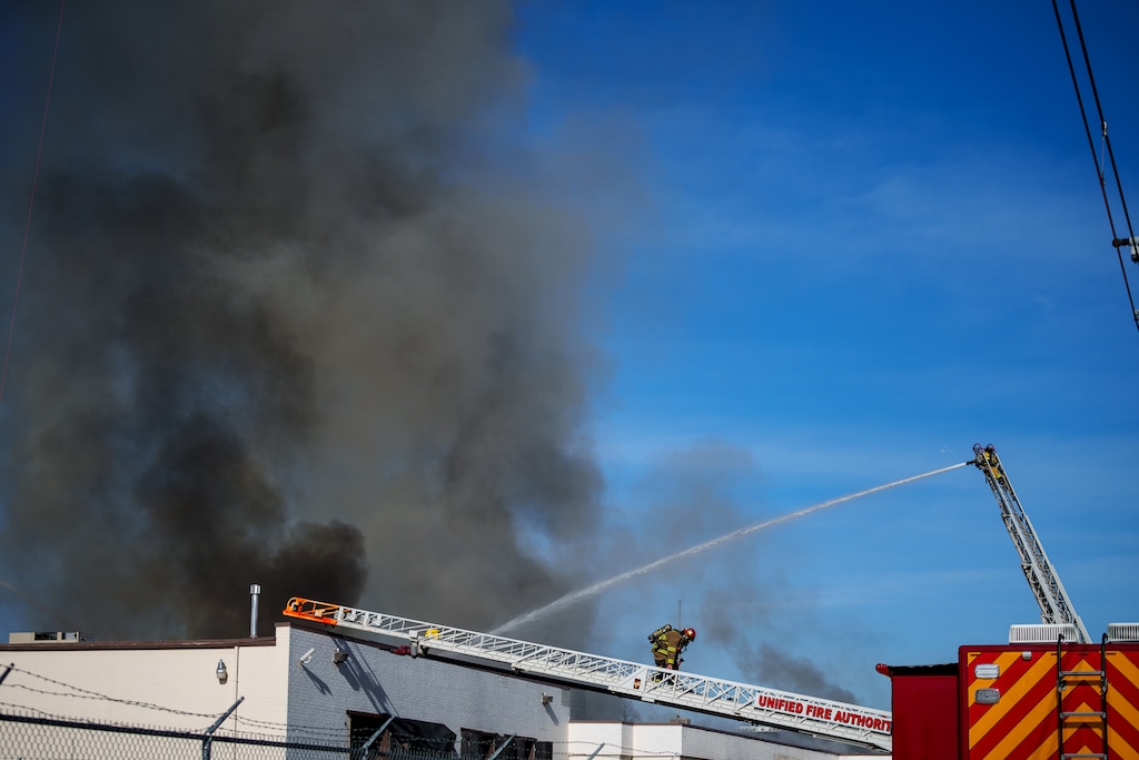 He said crews have started demolishing the portion of the building that caught fire, allowing firefighters to get their hose streams deeper into the blaze.