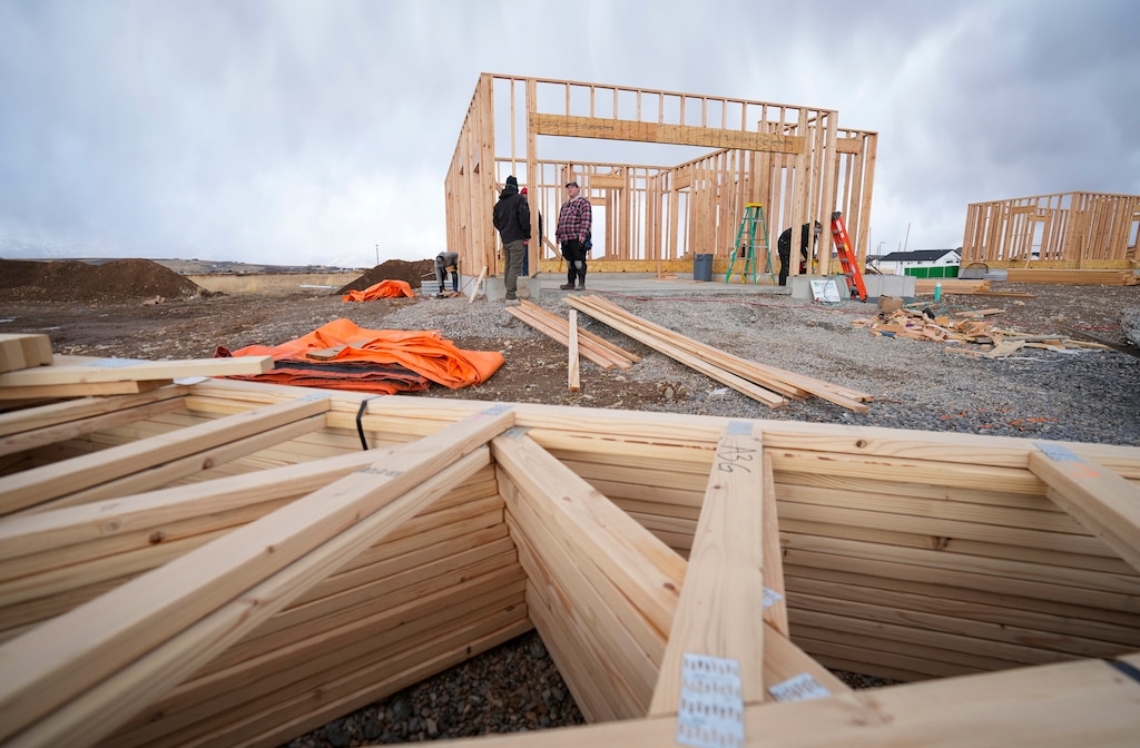 (Bethany Baker | The Salt Lake Tribune) Family members and volunteers work to build a house in Hyrum on Saturday, Feb. 8, 2025. The Neighborhood Nonprofit Housing Corp. makes homeownership attainable by having Utahns band together with future neighbors to build their own homes.