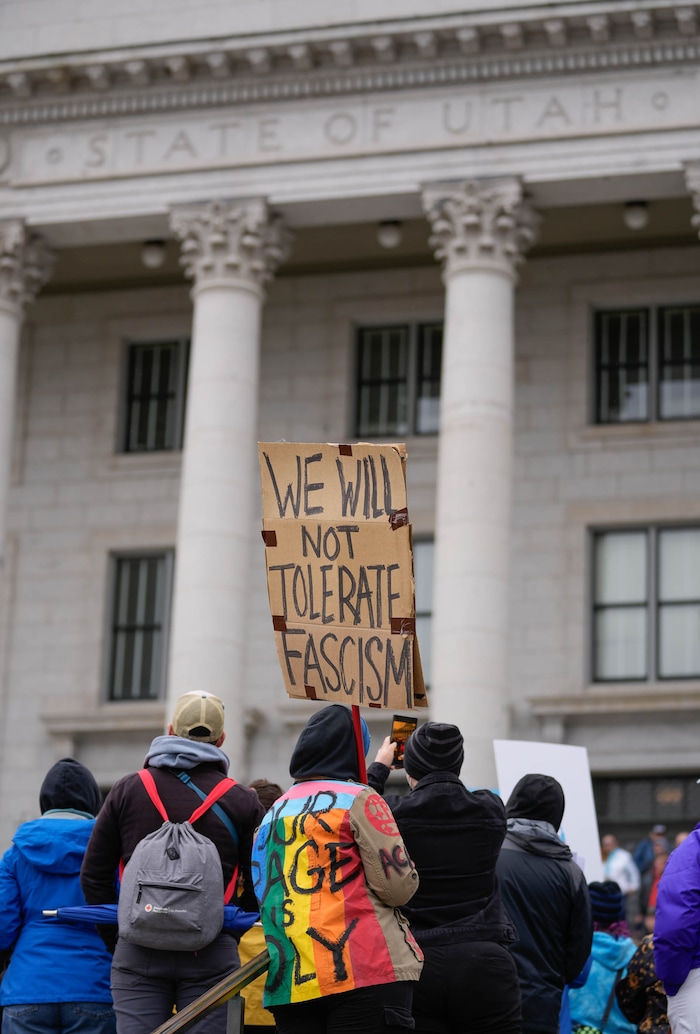 Cox wasn’t present at the rally. But Utah’s only openly LGBTQ+ lawmaker, Rep. Sahara Hayes, D-Salt Lake, was.