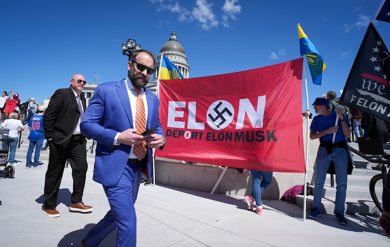 From Salt Lake City to Bluff — and at least seven other spots across the state — thousands of Utahns gathered to take part in a national “Hands Off” protest against President Donald Trump and Elon Musk.