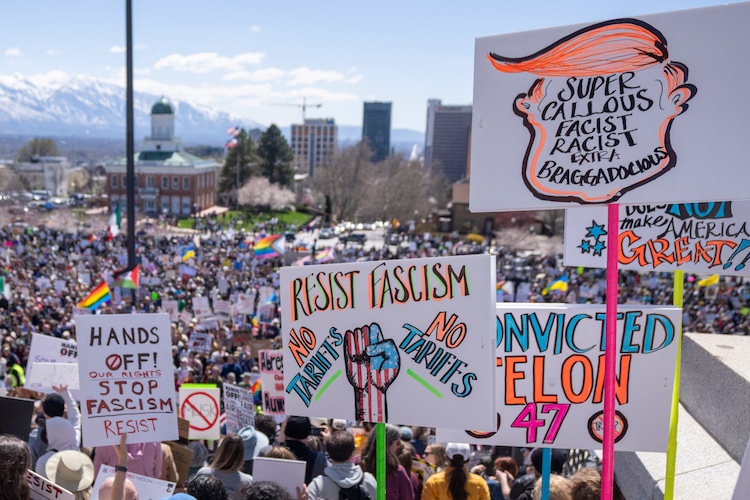 From Salt Lake City to Bluff — and at least seven other spots across the state — thousands of Utahns gathered to take part in a national “Hands Off” protest against President Donald Trump and Elon Musk.