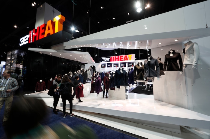Retailers look at the display of clothing at the opening of the Outdoor Retailers and Snow Show in the Colorado Convention Center, Thursday, Jan. 25, 2018, in Denver. Three floors of all the latest products for outdoor use makes the event the largest U.S. trade show for the outdoor and winter sports industries that represent $887 billion in sales. (AP Photo/David Zalubowski)