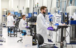 (Trent Nelson | The Salt Lake Tribune) Workers in a clean room at Texas Instruments' semiconductor fabrication facility in Lehi on Thursday, Nov. 2, 2023.