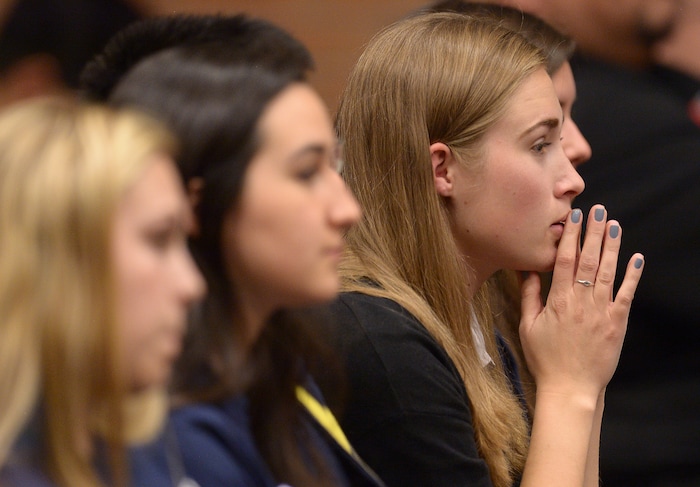 (Leah Hogsten | The Salt Lake Tribune/pool) Utah gun rights advocate Clark Aposhian was spotted in the crowd as controversial conservative commentator Ben Shapiro, editor-in-chief of the Daily Wire and former editor-at-large of Breitbart News, addresses the student group Young Americans for Freedom at the University of Utah's Social and Behavioral Sciences Lecture Hall, Wednesday, September 27, 2017. Shapiro was invited by the student organization sponsored by Young AmericaÕs Foundation, the parent organization over campus Young Americans for Freedom chapters, not the university itself.