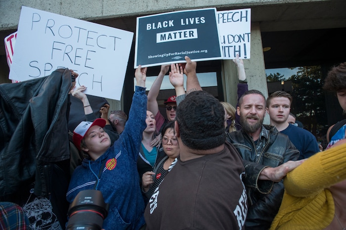 Most of the clashes between the two groups centered on free speech, particularly the charged rhetoric of Shapiro, editor-in-chief of The Daily Wire and former Breitbart News editor-at-large. Some said Shapiro spews hate speech; others said Shapiro makes a lot of sense.