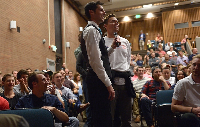 Markell Woolstenhulme, 20, and Parker Johnson, 22, both Utah Valley University students and members of the Young Americans for Liberty chapter there, said they support free speech — whether someone agrees with Shapiro’s ideas or not.