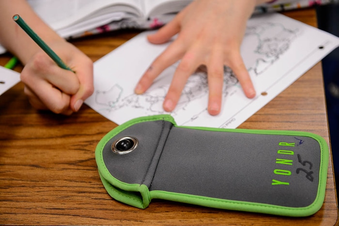 These days, she isn’t leaving it up to her students. She’s one of myriad teachers around the country using Yondr pouches — small canvas bags designed to temporarily lock away cellphones.