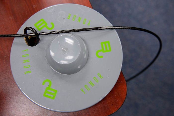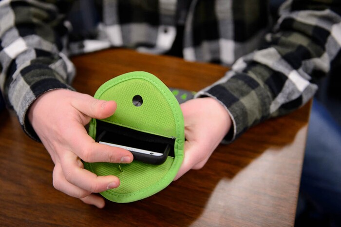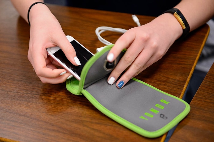 With Thomas’ welding skills a bit rusty, though, a colleague of hers suggested an alternative. That teacher had been to a concert at which attendees had been required to put their phones in lockable pouches made by Yondr. The proprietary device meant that the phones wouldn’t have to be out of their owners’ possession, but they’d also be inaccessible until the company’s unlocking mechanisms came out at show’s end.