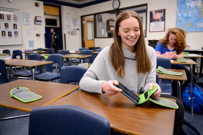 “There’s been a lot of interest from teachers in this school, and a lot of teacher friends of mine from other schools are interested, too,” Thomas said. “It’s a game-changer. This way, it’s on the student’s desk, but it’s out of commission.”