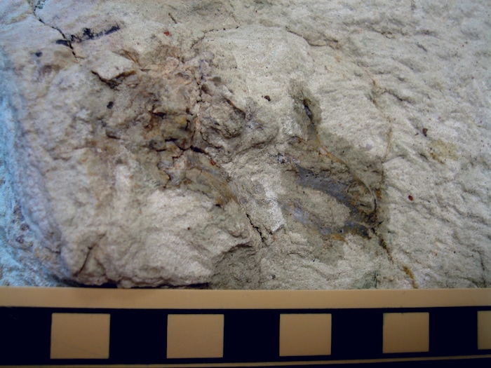It was found under the foot of a Hippodraco, or water dragon. But that doesn’t mean the creature was stepped on and crushed to death. Only the top part of the mammal’s skull — no lower jaw — was found at the site, meaning it likely washed up there.