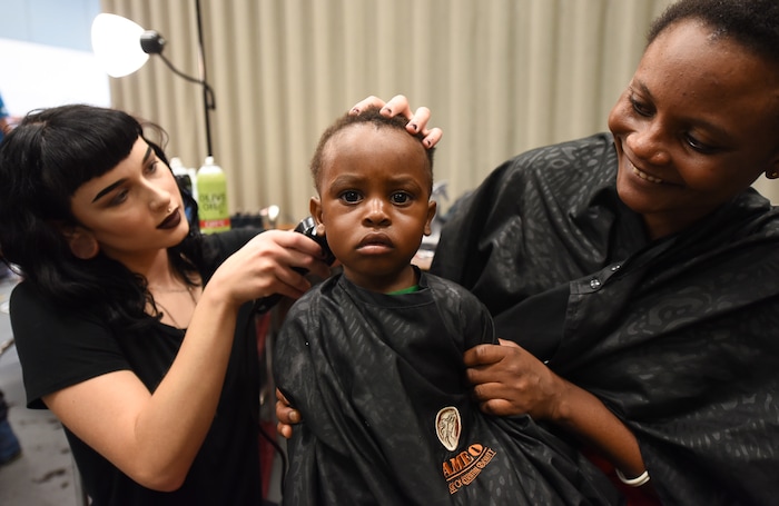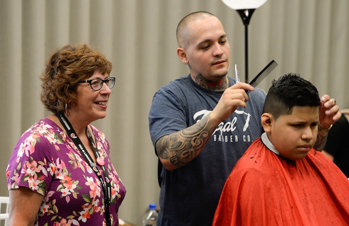 That’s the case for Albert Archuleta, one of the event’s volunteers. As he meticulously cut lines into a young boy’s hair at the back-to-school drive, he said giving back is how he pays his “debt to society.”