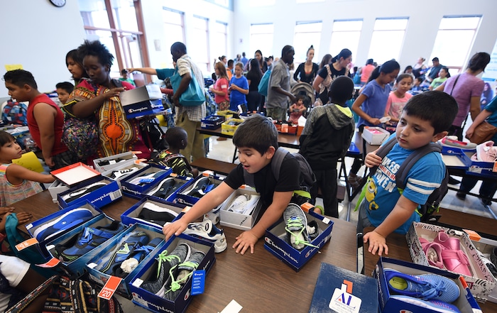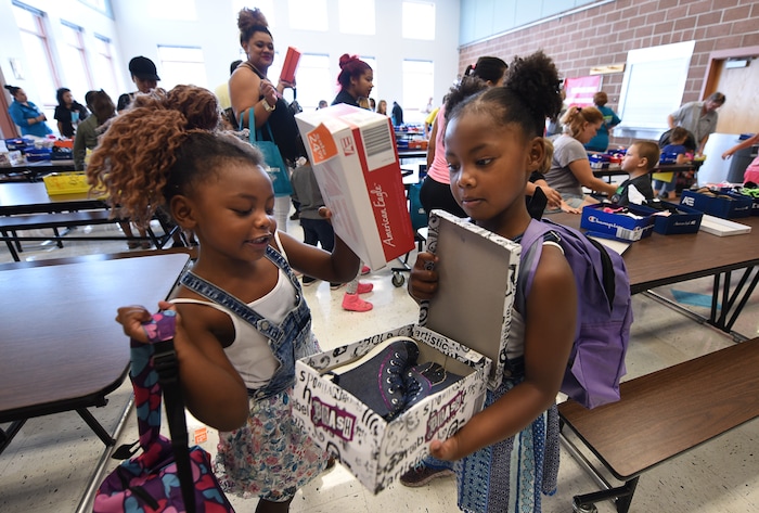 By the time Valerie Ulibarri and her two daughters, 9-year-old Sophia Gray and 6-year-old Olivia Gray, got there, the backpacks were already gone. But Sophia and Olivia still walked out with shiny new shoes.