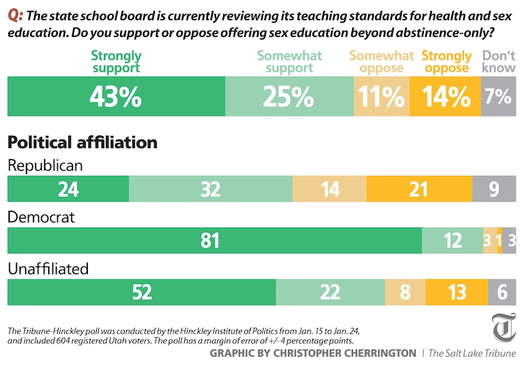 Lyon Cotti, with the Hinckley Institute, said the poll results may seem surprising, but she pointed out that when the Legislature tried to restrict sex education in 2012 — allowing schools to either drop it or only teach abstinence — there was so much public outcry that the governor vetoed the measure.