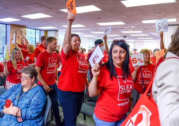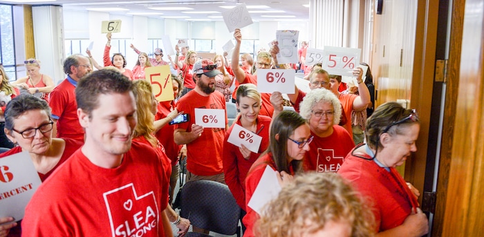 That’s the raise roughly 200 teachers asked for Tuesday night as they filled every seat in front of the Salt Lake City board of education. They weren’t allowed to speak at the public meeting. So with their signs, they made their opinions known as best they could.