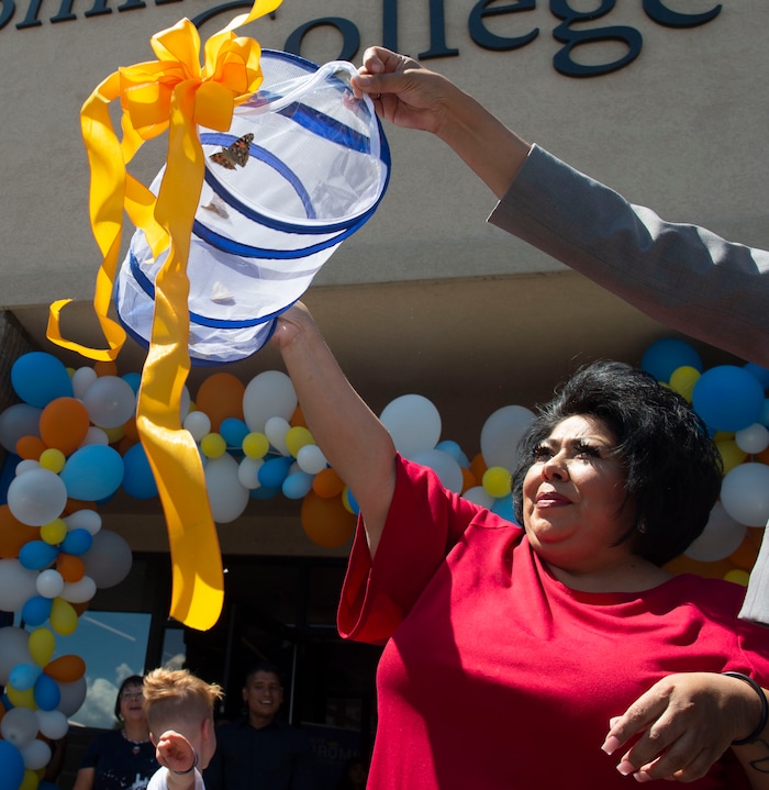 The Dream Center is housed at SLCC’s West Valley City campus. More than 70 people came for the unveiling, crowding into the lobby and competing for space with the hundreds of yellow, blue and white balloons. Many wore T-shirts that said, “I support undocumented students.” A few shouted, “Muchas felicitaciones” and took photos after counting down, “Uno, dos, tres.”