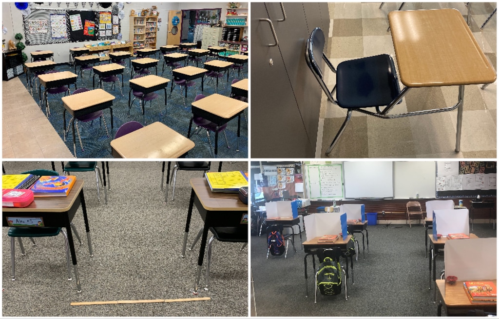 Madsen believes that administrators and state officials didn’t consider all “the little pieces” that factor into distancing in a classroom when they encouraged schools to reopen. Maybe the math works out on paper. For instance, though, the chairs in her room are attached to the desk on one side with a metal bar. That means students can only get in on one side. If she pushed the wrong side up against a well, then, that wouldn’t work.