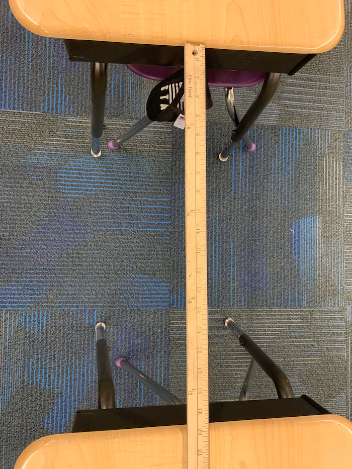She was also only able to get about 3.5 feet from the front row for herself to stand at the board and teach. She’s supposed to have 6 feet. That’s especially recommended for teachers because they have a group of kids facing them, breathing their direction, and because they’re usually more at risk for serious complications from the virus because of their age or health conditions.
