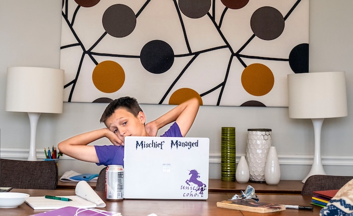 Miles' teacher started optimistically, greeting everyone with “Good morning, good morning” as they popped into the Zoom meeting. But it took about an hour for all of the students to get logged on.