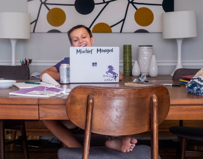 Trying to begin virtually has been a bit bumpy, though. The first day was rescheduled three times — first because of the virus and then twice after a massive windstorm tore through northern Utah last week, leaving many kids without the power needed to access online classes. Miles joked while his dad was snapping his back-to-school photo that it was “actually take No. 3″ because of the previous false starts.