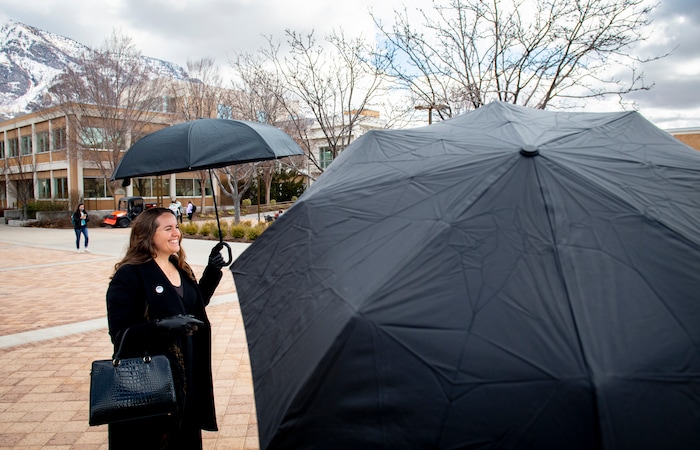 Allison and others dressed up in rainbow colors earlier in the day to attend classes and celebrate what they’ve adopted as “Rainbow Day.” And there were a few counterprotesters who showed up to read the LDS Church’s official proclamation on the family, which teaches members of the faith that gender is an “eternal identity” and which BYU cited to support its clarification of the Honor Code last year.