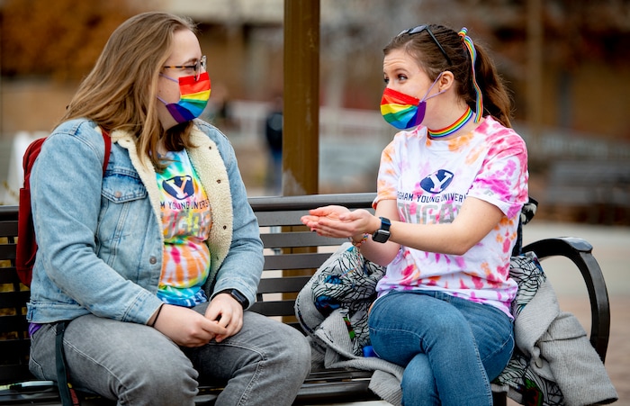 In the days after the change to the Honor Code, LGBTQ students and allies held several protests on campus and at the church’s headquarters in Salt Lake City. They conducted sit-ins outside of the Honor Code Office, too. But their efforts to challenge the policy were largely upended by the COVID-19 pandemic, with a few wearing rainbow masks Thursday night as a reminder of that.
