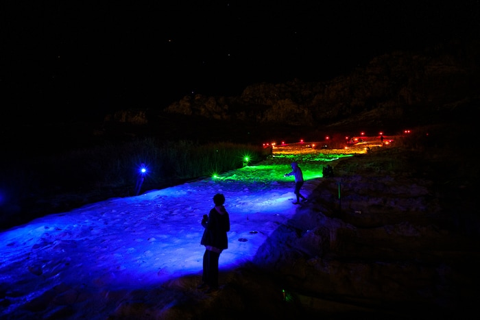 About 40 students and allies took part in lighting the “Y.” The group spent days mapping out the 380-foot tall letter and determining where they would need to stand along its borders to light it up.