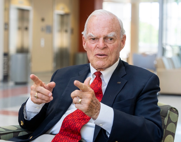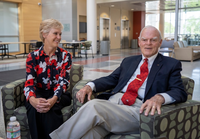 His name, along with his late wife Cleone’s, already is emblazoned on the health sciences education building, which Eccles sat in Tuesday afternoon, staring up at a portrait of his “beautiful sweetheart” in the lobby. And his late father’s name is on the side of the building next door for the medical library, a commemoration after Spencer Stoddard Eccles died from cancer. The new name for the medical school falls on the 50-year anniversary of that naming, which was the first major contribution from the family.