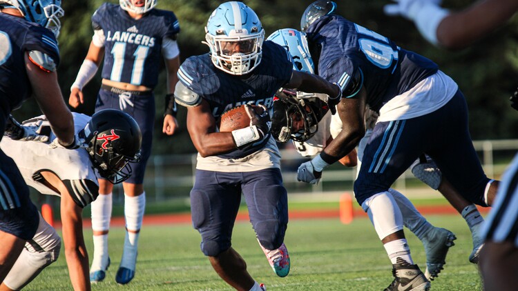 (Craig Hammond) Pictured is Elias West, playing football for Layton High School.