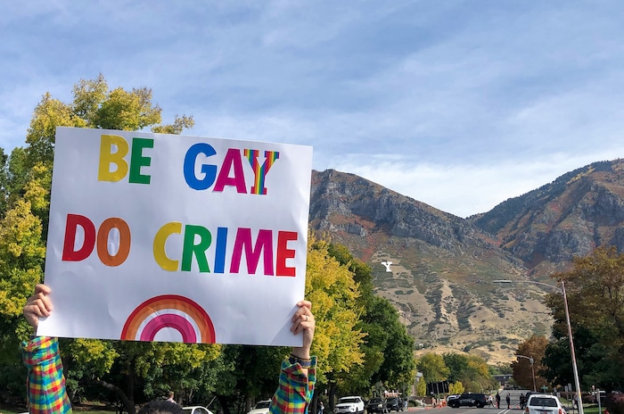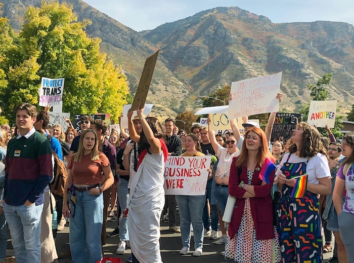 No counterprotesters were visible at the event, though some students walking by stopped to watch. Butler said they had heard a counterprotest was being planned, but BYU sent out a notice telling counterprotesters they could not do so on campus.