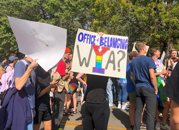 The Tuesday protest, which was expected to involve some 100 colleges and universities nationwide, was timed to coincide with National Coming Out Day, a celebration of LGBTQ people being able to live openly and authentically.