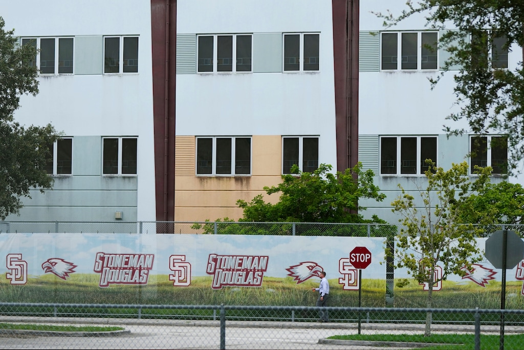 (Rebecca Blackwell | AP) Letters on a fence read "MSD Strong" outside Marjory Stoneman Douglas High School in Parkland, Fla., Wednesday, July 5, 2023. Family members of the 14 students and 3 staff members killed in a 2018 school shooting were for the first time being permitted to visit the preserved crime scene, ahead of the building's planned demolition.
