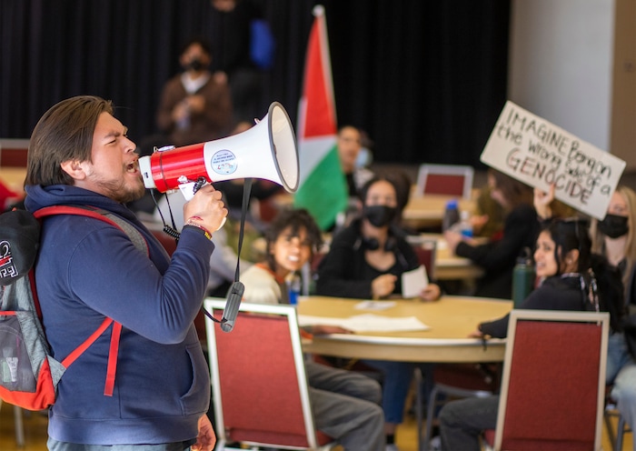 More than 150 students, many from marginalized communities, joined the protest at the Center for Student Equity and Belonging. They spread out and occupied that space for more than an hour, packing the office from wall to wall while waving a Palestinian flag.