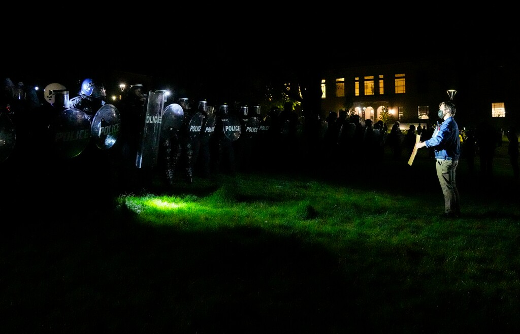 Police continued to move in, arresting those who threw objects or did not comply. Students shouted obscenities and called the officers “traitors.”