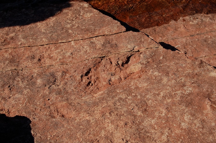 Though their three-toed footprints are not fossils, they’re treated as such under Utah Code. Anyone who destroys one could be charged with a felony, though no charges have been filed recently. (Three teens were tried in juvenile court for destruction of a paleontological site at Red Fleet State Park in 2001.)