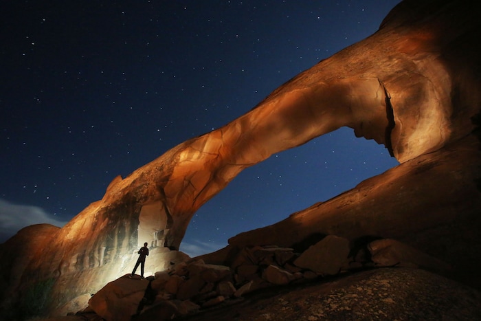 Jenny McKinsey, 27, of Salt Lake City, visited Arches for the first time last weekend. She and her husband got to the trailhead of Delicate Arch, the park’s most popular path, at 5:45 a.m. Sunday to beat the heat and the crowds. They found some solitude on the way up, but by the time they trekked back down, a steady stream of hikers was coming in.