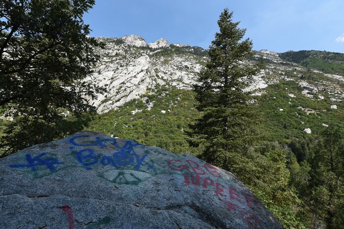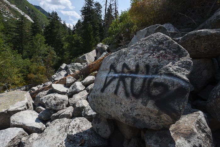 But the taggers operating in Little Cottonwood are more malicious, persistent and systematic. Their spray-painted handiwork imposes an in-your-face stain on the viewshed that no one can miss.