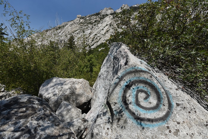 Whipperman’s rocks don’t need to be moved but rather cleared of spray-painted graffiti that keeps reappearing — endlessly — on Little Cottonwood Canyon’s granite boulders.