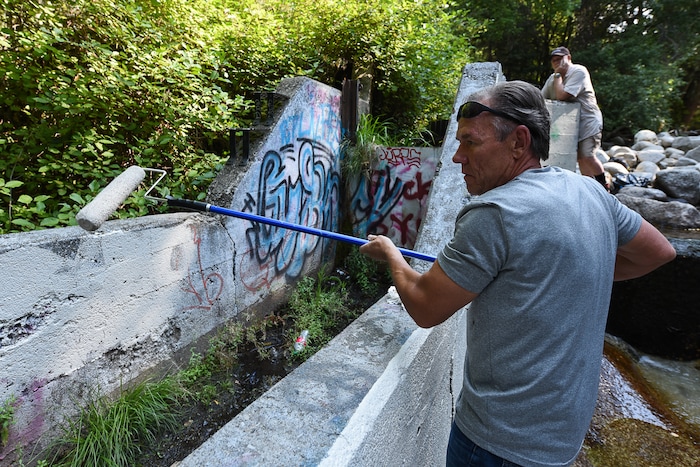 “My goal is, by snowfall, to have all the graffiti removed from Little Cottonwood Canyon,” he said recently while rolling paint over a historic concrete water-diversion structure that was covered with pictures and gang insignia. Some images appeared well-practiced and carefully stenciled, like one showing the Tasmanian Devil cartoon character. Others were gang tags, barely legible, clever and inane, some loving, some hateful.