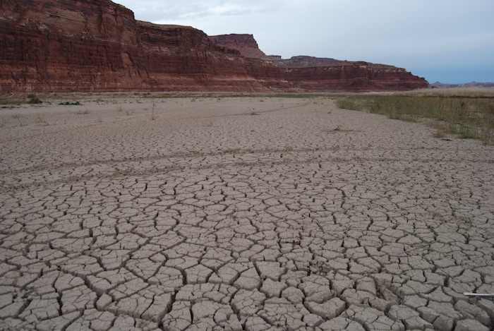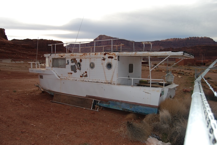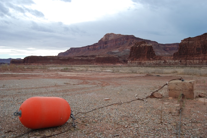 Buoys at Hite, the ghost town where the Dirty Devil and the Colorado used to enter the lake, are tethered to ground that is nowhere near water. A half-mile hike across sun-cracked sediments deposited by the receding lake now separates the boat ramp from the river.