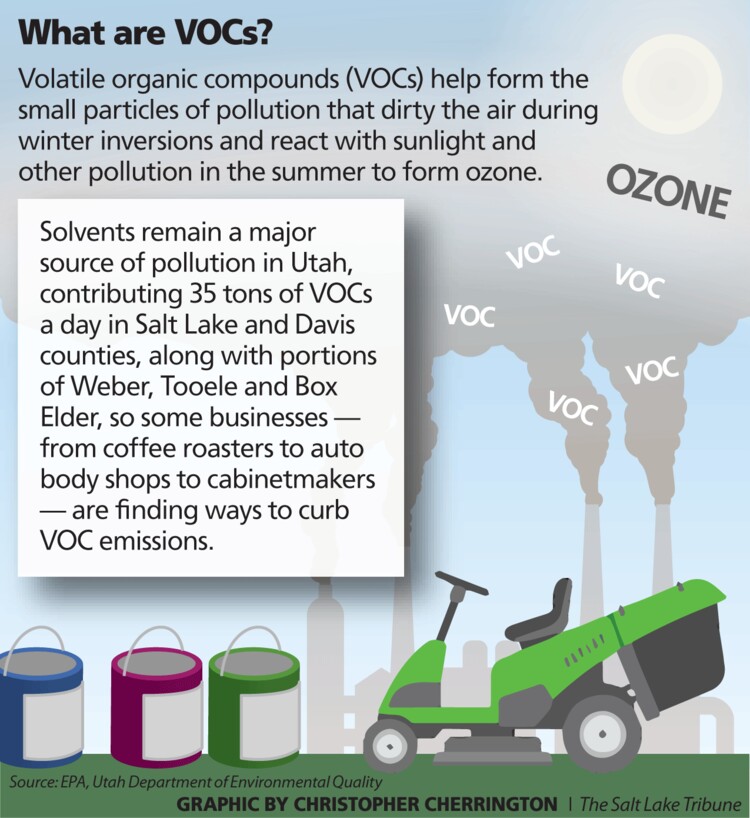 Several small businesses in Utah have found solutions to reduce their VOC emissions — voluntarily or due to state rules — by taking such steps as switching to water-based paints for automobiles and cabinetry, using electric-powered lawn tools instead of gas-powered, and adding controls to clean exhaust on coffee roasters.