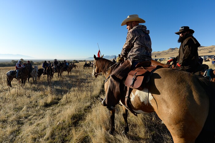 (Francisco Kjolseth | The Salt Lake Tribune) Brothers Todd and Nathan Burgener get ready to ride in the 33rd annual Bison Roundup, Saturday, Oct. 26, 2019, on Antelope Island, a state park located near Syracuse in Davis County. Every year Utah wildlife and parks officials move the animals from across the island so they can be weighed, tagged and given health screenings.