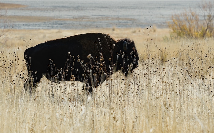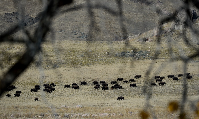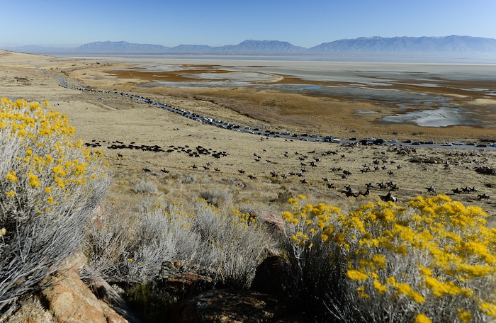 Cowboys hired by Utah State Parks on Saturday gathered the 700 bison that roam freely on Antelope Island in an annual event observed by hundreds of people.