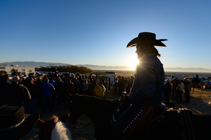 (Francisco Kjolseth | The Salt Lake Tribune) Caitlin Cottam of Springville joins the cowboy meeting as she gets ready to ride in her first Bison Roundup, Saturday, Oct. 26, 2019, on Antelope Island, a state park located near Syracuse in Davis County. Every year Utah wildlife and parks officials move the animals from across the island so they can be weighed, tagged and given health screenings.