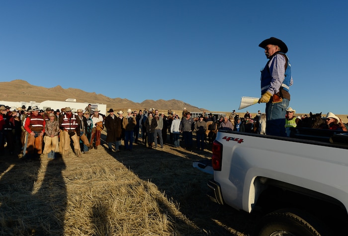 (Francisco Kjolseth | The Salt Lake Tribune) Commander Neil Christensen with Utah County Search and Rescue runs the plan of the day during the cowboy meeting at first light prior to the 33rd annual roundup, Saturday, Oct. 26, 2019, on Antelope Island, a state park located near Syracuse in Davis County. Every year Utah wildlife and parks officials move the animals from across the island so they can be weighed, tagged and given health screenings.