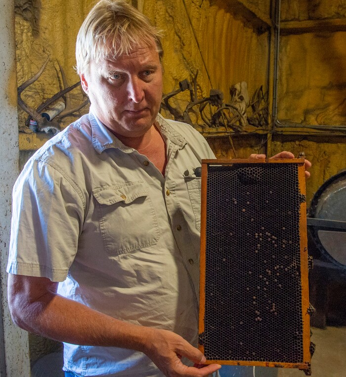 Cox’s entire operation employs seven people and annually produces 70,000 to 220,000 pounds of honey, each pound fetching about $2.