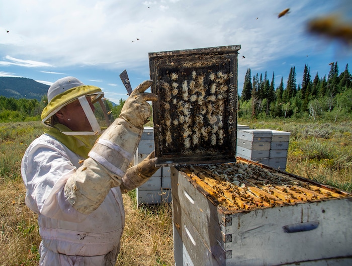 “They’re making more flowers. They’re making healthier trees. It could wind up the honeybees are a benefit for public lands,” Cox says. “The bees here are creating life. They’re not damaging the flowers. By pollinating the flowers in the Forest Service [lands], it ensures a lot of flowers, blooming plants and not just grasses and sagebrush, so it makes it better.”