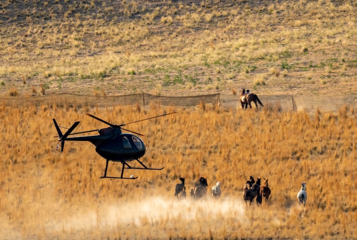 The Bureau of Land Management has contracted with a livestock roundup company which is being paid hundreds of dollars per head to use a helicopter to drive horses into pens. The plan is to gather about 400 of the estimated 500 horse that occupy the Onaqui herd management area, one of 19 that BLM oversees in Utah. The agency says most ranges are overpopulated with free-roaming horses and burros that are degrading the land, and expects to conduct additional roundups this year.