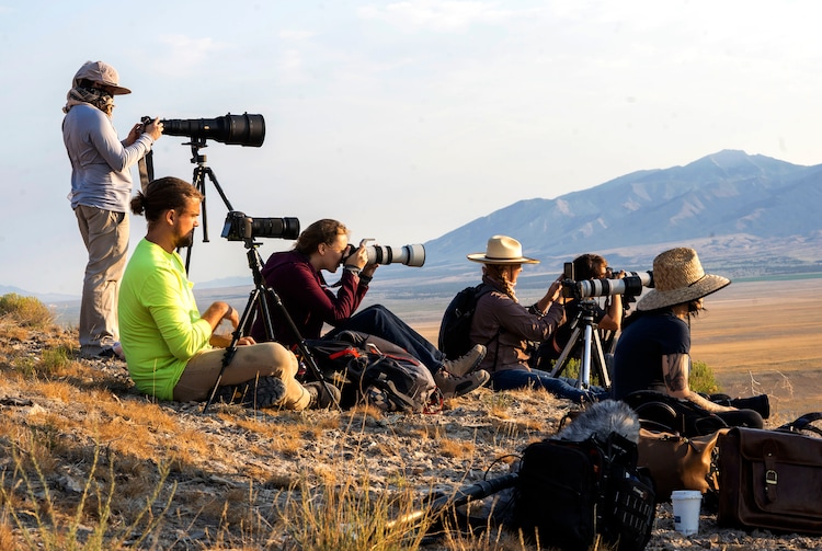 (Rick Egan | The Salt Lake Tribune) Wild Horse lovers and media observe as a helicopter rounds up wild horses during the Onaqui Herd Management Area wild horse gather on Wednesday, July 14, 2021.