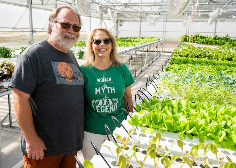 (Rick Egan | The Salt Lake Tribune) Ron and Anita Murphy in their hydroponic farm in West Jordan, on Monday, June 6, 2022.