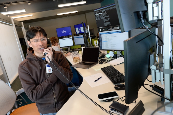 (Francisco Kjolseth | The Salt Lake Tribune) Critical Care Specialist Dr. Felix Leung provides medical guidance for a patient from the Telecritical Care Center in Middle. Intermountain Healthcare announced the launch of "one of the nation's largest virtual hospital services." It will involve 500 caregivers, offering telehealth services on everything from basic care to stroke evaluation and newborn critical care. The Virtual Hospital Services Testing Laboratory showcased several medical services on Wednesday, Feb. 28, 2018, in Midvale.